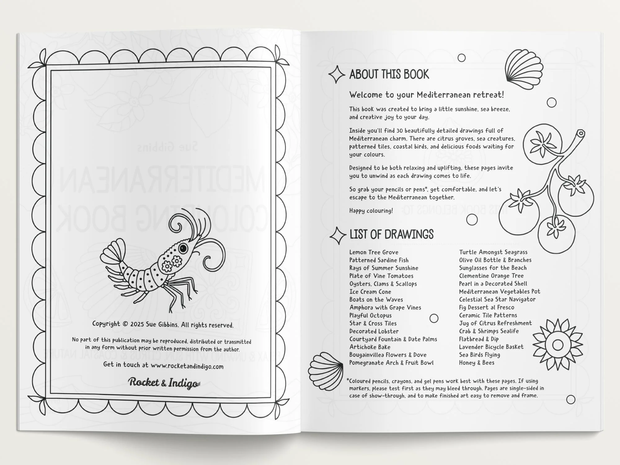 30 beautifully detailed illustrations of nature, food, and culture that capture the region’s sunshine and spirit. Perfect for relaxation and mindful colouring, this book offers a peaceful pause whenever you need it.